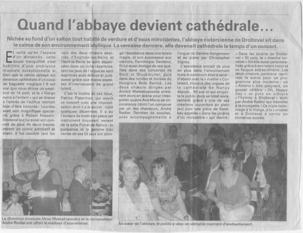 2007 - Abbaye de Droiteval (Vosges) en collaboration avec le Chœur du Relais de Deuil la Barre