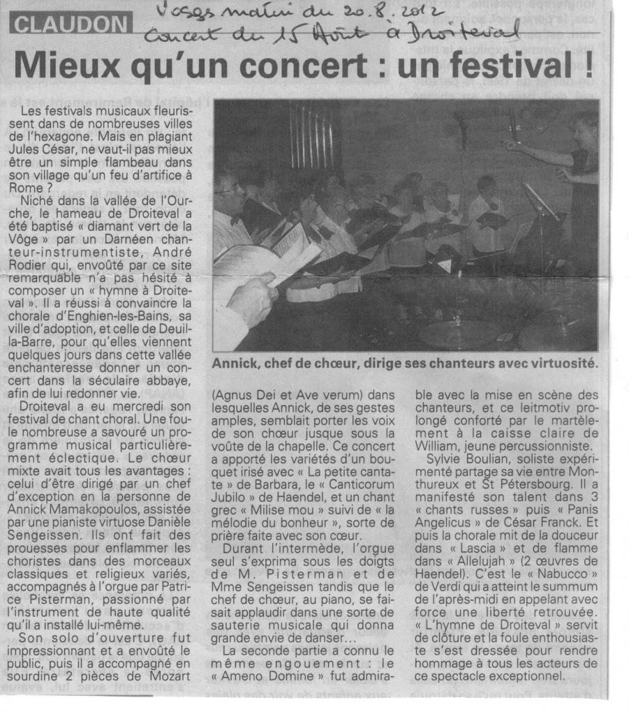 15 Août 2014 Concert en la chapelle de l'abbaye de Droiteval (vosges)